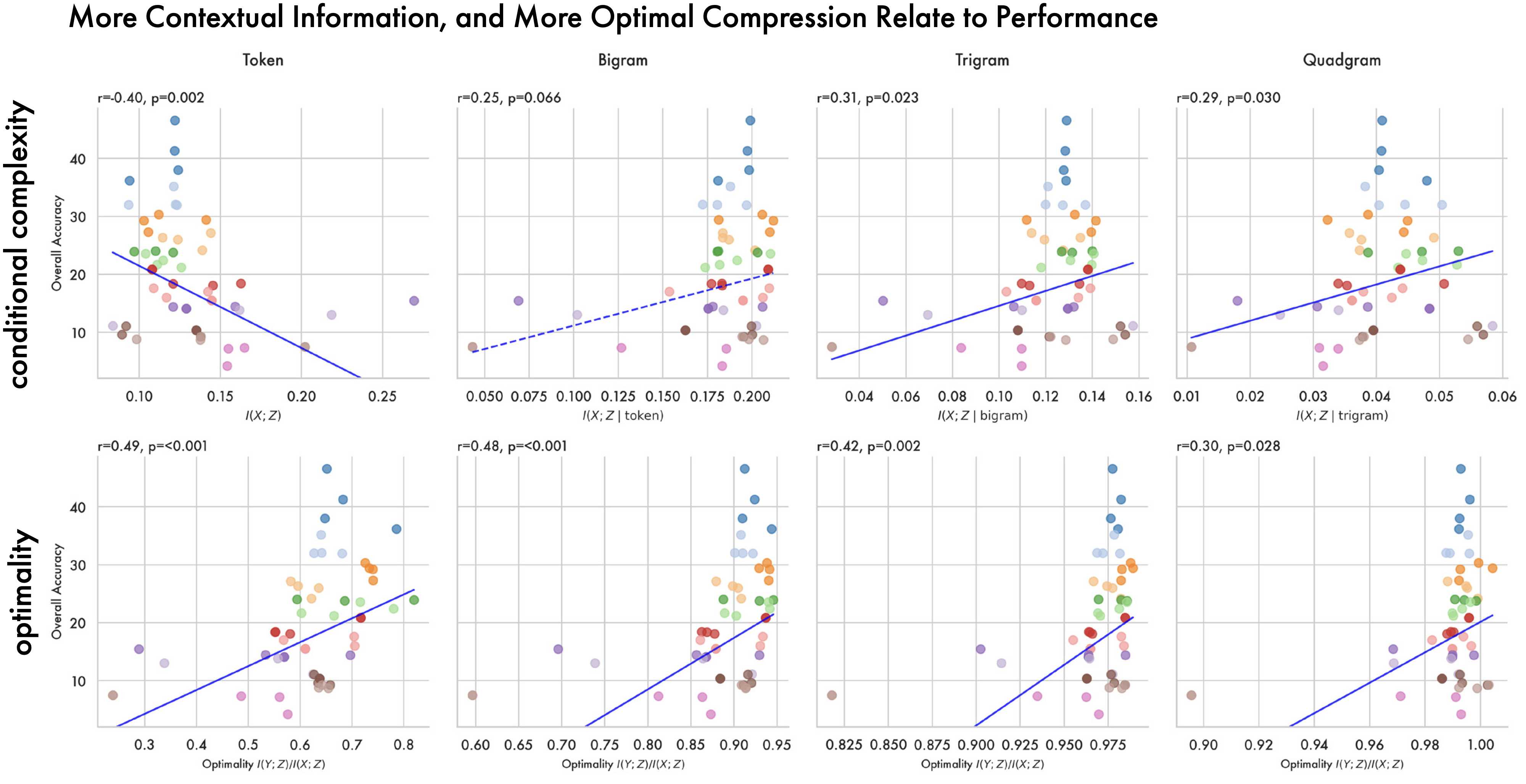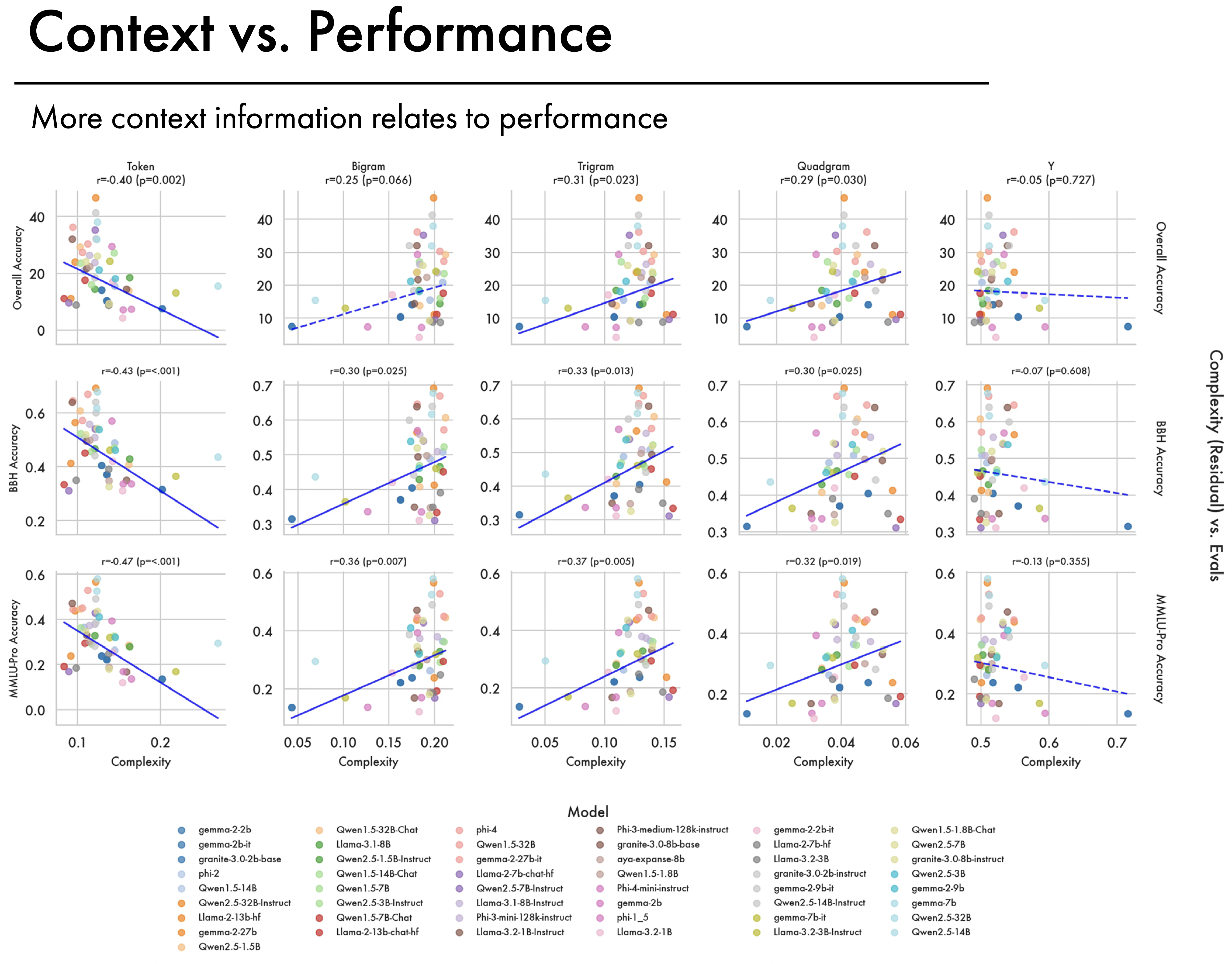Shown above — less token information, but a higher proportion of local contextual information, relates significantly to downstream performance. In the main paper we report token level back-off in the correlation results, where lower complexity is related to performance.